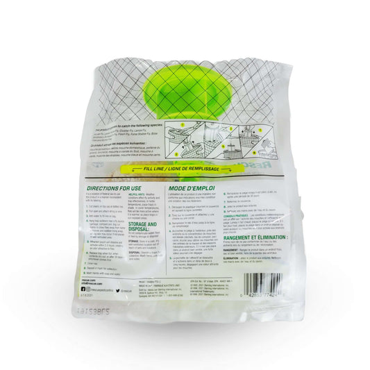 -Instructions: Remove any old flies, clean the trap, then mix the powder from one sachet with water and let sit for 24 hours to ferment.